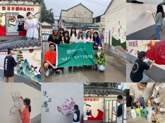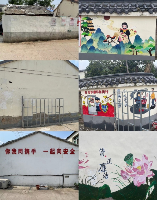 為改變城中村斑駁墻面,弘揚(yáng)熱愛生活、發(fā)現(xiàn)美好的社區(qū)文化,2023年9月馬群街道果場社區(qū)、果場社區(qū)居民學(xué)校、掌云+積分制工作小組聯(lián)合轄區(qū)青年志愿者,南京師范大學(xué)“向美而行”藝術(shù)下鄉(xiāng)實(shí)踐團(tuán)、困境兒童進(jìn)行陳家院墻面美化志愿活動。
