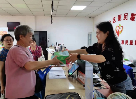 在發(fā)放毛巾禮盒工作之前,社區(qū)便民服工作人員全力做好社會化管理服務(wù)的企業(yè)退休人員名單登記、核查,確保納入社區(qū)的企業(yè)退休人員人數(shù)名單正確,同時也考慮到退休工人年紀(jì)原因,提供了各種不同度數(shù)的老花鏡。發(fā)放時遇到不屬于本轄區(qū)管理的退休工人,便民服務(wù)站的工作人員會耐心解釋并在江蘇人社一體化經(jīng)辦平臺及時為其辦理異地轉(zhuǎn)移或社區(qū)轉(zhuǎn)移手續(xù)且給其發(fā)放毛巾禮盒。對于已發(fā)出的物品,便民服務(wù)站的工作人員及時在系統(tǒng)中做好發(fā)放記錄,確保不重發(fā),不漏發(fā)。