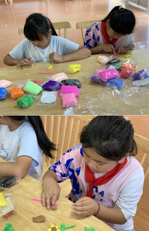 在活動現(xiàn)場,孫老師耐心地教導學生們?nèi)绾问褂贸壵惩林谱飨蛉湛?。孩子們手拿著小工具,眉頭緊皺,專注地模仿孫老師的動作,不斷塑造著自己的作品。他們用稚嫩的雙手捏出花瓣的形狀,用一點點粘土粘貼在一起,最后呈現(xiàn)出逼真的向日葵形象。整個過程中,孩子們沉浸在創(chuàng)造的樂趣中,展現(xiàn)出了自己的想象力和藝術天賦。