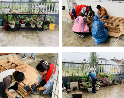 最后是給英大媽家改造一下花架,英大媽家花很多,但是花總是放的亂七八糟的沒(méi)有層次感,這次在社工和志愿者的幫助下終于將花給放整齊了,頓時(shí)院子也顯的大了很多。
