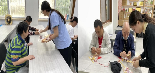 活動(dòng)第一項(xiàng)制作中秋燈籠,工作人員依次發(fā)好制作材料,治療師向大家演示制作方法和步驟后,大家迫不及待的拿著材料開(kāi)始制作。對(duì)于一些上肢活動(dòng)不便的殘疾人,安排專職人員協(xié)助制作,現(xiàn)場(chǎng)感受到了殘疾朋友們的歡樂(lè)和喜悅。在工作人員與殘疾朋友們的攜手制作下,一個(gè)個(gè)造型別致、新穎獨(dú)特的兔子燈籠就誕生了。