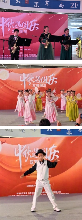 本次活動,來自太陽城小學(xué),花港一小,東郊小學(xué),天悅花園幼兒園的孩子們在舞臺上大放異彩,含著飽滿的熱情為祖國母親慶生,為團圓之夜喝彩。