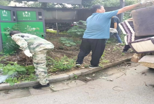 在清理活動開始后,新時代文明實踐站志愿者和物業(yè)工作人員分成了兩組,一組清理馨康苑小區(qū)的雜物,一組清理??翟沸^(qū)內衛(wèi)生死角。志愿者將小區(qū)內的雜物以及垃圾站內的衛(wèi)生死角等進行了一一清理。清理中,工作人員將廢棄的沙發(fā)柜子等居民丟棄的雜物以及垃圾站附近的垃圾全部帶走了,經(jīng)過志愿者和物業(yè)工作人員的共同努力,本次美化家園衛(wèi)生整治總共清理了6車垃圾。