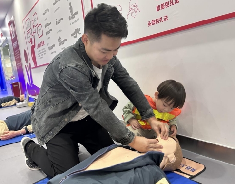 活動(dòng)現(xiàn)場(chǎng)還進(jìn)行了模擬應(yīng)急救護(hù)演練。消防員們生動(dòng)展示了急救流程和必備的急救方法,向孩子們傳授了生命救援的基本知識(shí)。孩子們跟著消防員的步驟,有序上手練習(xí)。