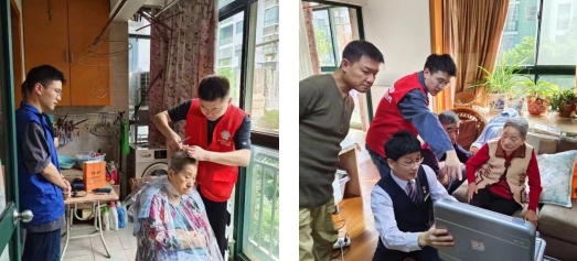 該戶家庭里有位百歲老人是前不久剛從老家接到這里來(lái)生活的,網(wǎng)格員同志對(duì)這戶家庭也是尤為關(guān)注經(jīng)常聯(lián)系看是否有需要社區(qū)幫助的地方。當(dāng)?shù)弥先诵枰戆l(fā)的時(shí)候立馬聯(lián)系了轄區(qū)內(nèi)一家理發(fā)店老板馬師傅,馬師傅聽到上門為百歲老人理發(fā)也是義不容辭的答應(yīng)了。