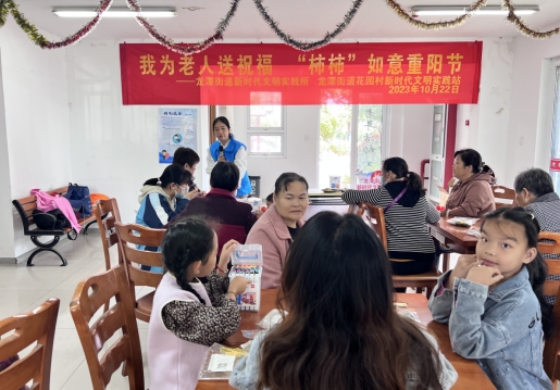 為了營造濃厚的尊老孝親的文化氛圍,弘揚中華民族尊老敬老的美德,同時也讓老人感受到孩子對她們的愛。10月22日,南京市棲霞區(qū)龍?zhí)督值阑▓@村開展“我為老人送祝福,‘柿柿’如意重陽節(jié)”活動。
