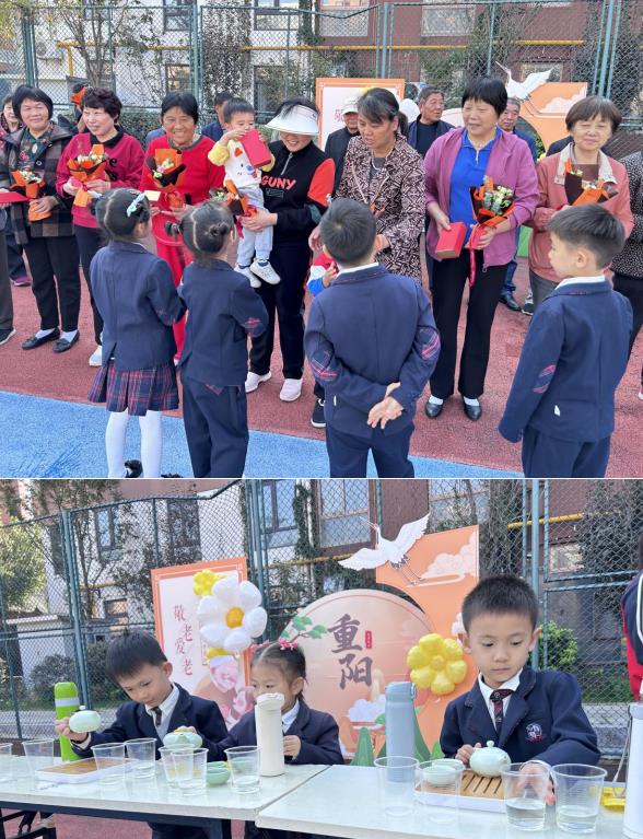 隨后,小朋友們準(zhǔn)備的另一個(gè)驚喜令現(xiàn)場的氣氛更加溫馨。他們親手采摘了鮮嫩的菊花,將其放入熱水中泡制成菊花茶。小朋友們親自為爺爺奶奶們倒上自己泡制的菊花茶,這份親手制作的茶品充滿了他們的關(guān)愛和感恩之心。爺爺奶奶們感受到了小朋友們真摯的情感,品嘗著茶水中散發(fā)出的芬芳和溫暖。