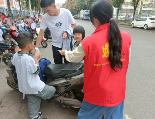 學(xué)生放學(xué)期間,志愿者在長山社區(qū)轄區(qū)內(nèi)小學(xué)門口分發(fā)傳單,通過普及“掃黃打非”知識、現(xiàn)場互動問答等方式,告訴同學(xué)們“黃”和“非”的危害性,以及怎樣辨別非法出版物。