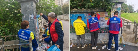 石壩社區(qū)工會開展“清除違規(guī)廣告 扮靚