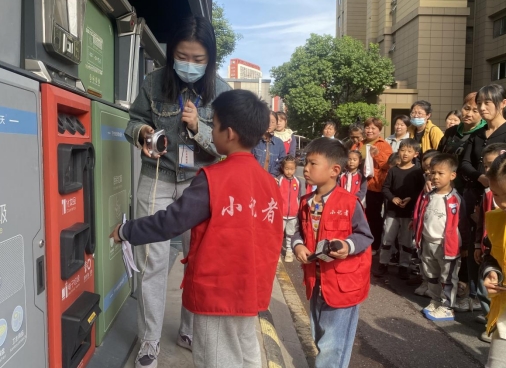 活動(dòng)開始,邁皋橋街道城市治理委員會(huì)公眾委員圍繞垃圾分類亭房的功能布局、垃圾投放口和對(duì)應(yīng)類型垃圾類型、使用步驟等進(jìn)行講解,手動(dòng)操作并回答孩子們的疑問,現(xiàn)場(chǎng)帶領(lǐng)孩子們認(rèn)識(shí)生活中垃圾分類的實(shí)際操作過程。