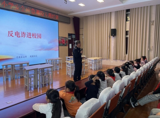 同時,針對近期全國各地頻繁發(fā)生的電信詐騙案件,花港派出所王警官對學生們開展了反電詐的相關知識,以學生為媒介,將反電詐意識“帶回家”。