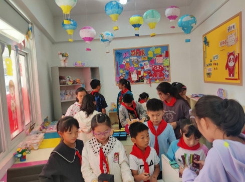 “你好,我想換一把尺子!”“我想要一枚童星勛章!”“我想為我們班級(jí)點(diǎn)一首歌。”剛吃完飯,孩子們就迫不及待地手持“五彩券”,在南灣營(yíng)小學(xué)“掌上云社區(qū)”驛站門口排起了長(zhǎng)長(zhǎng)的隊(duì)伍。兌換區(qū)的學(xué)生人頭攢動(dòng),每個(gè)孩子都在精心挑選自己心儀的物品,臉上都洋溢著快樂(lè)的笑容。同學(xué)們用自己努力贏得的五彩券換取自己心儀的獎(jiǎng)品,對(duì)他們自己來(lái)說(shuō)是極大的獎(jiǎng)勵(lì),對(duì)其他同學(xué)來(lái)說(shuō)也起到很大的鼓舞作用。