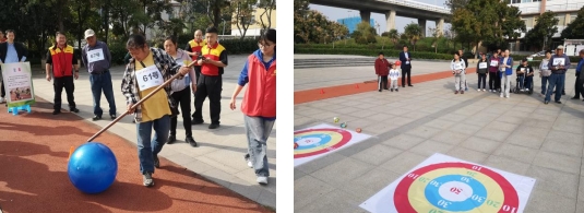 根據(jù)殘疾人的身心特點,運動會設(shè)置了保齡球、夾彈珠、定點沙包等八個趣味性運動項目。殘疾人朋友們積極認真參與到各項運動中,社區(qū)志愿者在旁為他們加油打氣,整場運動會充滿了歡聲笑語。