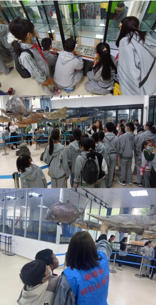 跟隨志愿者的腳步,探索者們第一站來到鯨鯊標(biāo)本館。神奇的海洋礦物、神秘的海洋生物等,一下子吸引了小朋友們的目光。觀察、感受、好奇……“這個(gè)是什么生物?”“這個(gè)生活在深海里嗎?”,各種各樣的問題也應(yīng)運(yùn)而生。帶著好奇心,志愿者對(duì)一些生物進(jìn)行了講解,在妙趣橫生的講解中,小朋友們對(duì)部分海洋生物的習(xí)性、生活環(huán)境等有了基本了解。