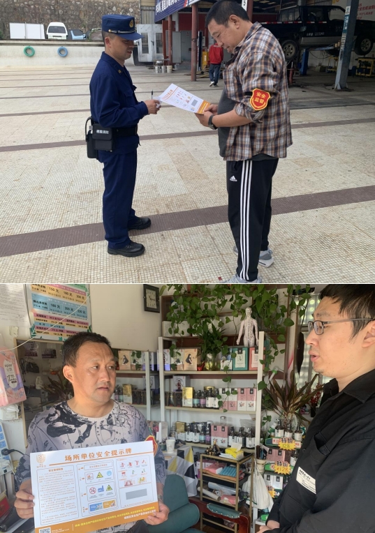 在巡查過程中,社區(qū)工作人員還積極引導(dǎo)商戶每天營業(yè)前后進行“一戴三關(guān)三查”工作。確保門禁系統(tǒng)完好,消防設(shè)施齊全,安全隱患及時發(fā)現(xiàn)和解決;對安全設(shè)施、用電用氣和消防器材進行查驗和維護,確保設(shè)施設(shè)備正常運行,保障消防安全。