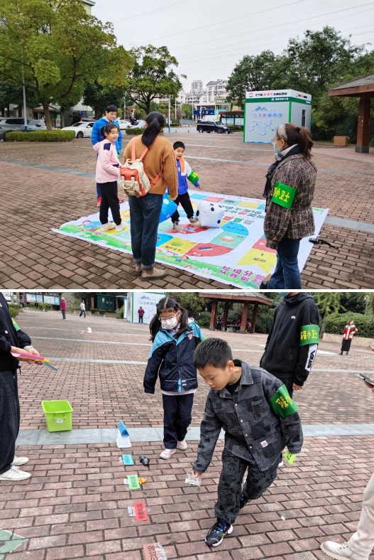 活動現場,孩子們絡繹前來參加活動,簽到打卡,領取“環(huán)保小衛(wèi)士”袖章?,F場還設置了垃圾分類闖關游戲,第一關垃圾分類丟沙包、第二關垃圾運送站、第三關我來比劃你來猜、第四關垃圾分類大富翁,層層闖關,孩子們通過闖關勝利后獲得環(huán)保氧氣幣,再用積累的氧氣幣兌換氧氣植物。整個活動以豐富的游戲闖關形式,調動了孩子們的樂趣,提高孩子們對垃圾分類的重要性認知。