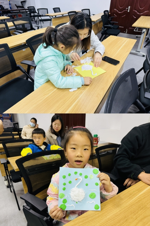 隨后,孩子們以故事情節(jié)為靈感,用手中的粘土塑造出生動可愛的鵝形象。粘土在小手中變成了生動的詠鵝,孩子們在與家長的共同創(chuàng)作中感受到了無限的樂趣。手工不僅鍛煉了他們的動手能力,更加深了他們對故事中角色的理解。