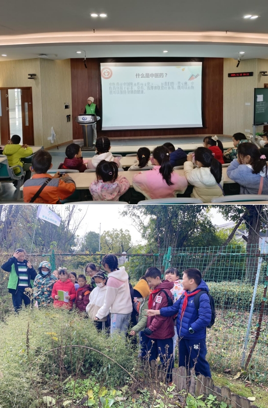 晨陽照矮墻,秋風動霜枝。小朋友們不懼晚秋的寒冷,分成兩隊,跟著各自的講解員,井然有序地進入藥苑。講解員耐心地為他們介紹了各種草藥的特征功效。小朋友們則被各種草藥吸引,擁在講解員的身邊,積極詢問眼前看到的植物,用心傾聽志愿者的講解。在這一問一答間,小朋友們對藥苑中草藥的性質和功效有了更深層次的了解。