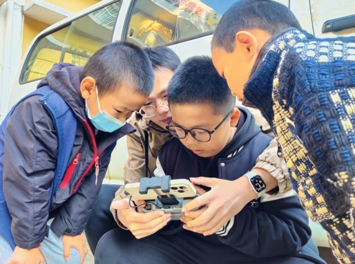 認(rèn)真聆聽完詳細(xì)的航天知識(shí)科普后,參加活動(dòng)的小朋友和家長們在志愿者的帶領(lǐng)下來到室外,志愿者們先用簡單易懂的話語介紹了“無人機(jī)”的基礎(chǔ)知識(shí),讓大家對無人機(jī)有了初步的了解。緊接著,志愿者開始操控?zé)o人機(jī),給大家展示了一段無人機(jī)花式表演。小朋友們激動(dòng)不已,紛紛舉手表示自己要嘗試。于是,志愿者耐心細(xì)致地進(jìn)行一對一手把手教學(xué),讓小朋友們體驗(yàn)到操控?zé)o人機(jī)飛行的樂趣。