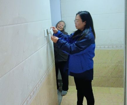 此前,和平村網(wǎng)格員在例行轄區(qū)內(nèi)日常巡查時,有孤寡老人向她反映,家中的燈壞了,自己一個人在家且行動不便,希望盡快把燈修好。在接報后,和平村的網(wǎng)格員和志愿者及時展開行動,他們深知,良好的居住環(huán)境與舒適的家居條件對老年人來說至關(guān)重要。于是,他們自發(fā)地組織力量,攜帶專業(yè)工具和愛心,冒著寒冷上門為孤寡老人修復(fù)家中的燈光。