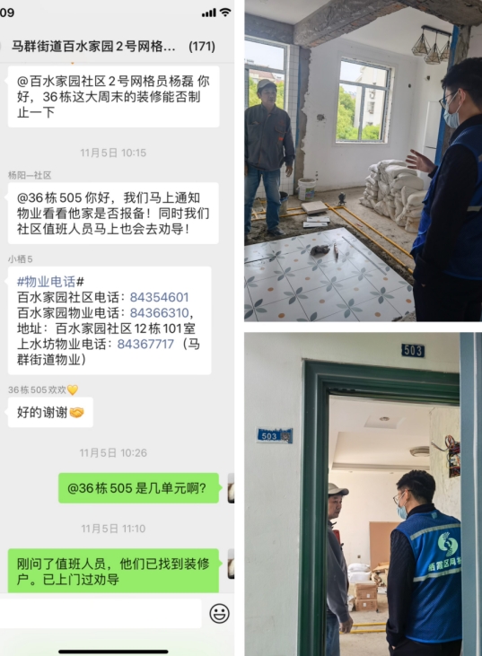 “不知道哪家在裝修,被電鉆吵醒”“今天周末還有人在裝修。”近日,百水家園小區(qū)36棟居民因為被持續(xù)不斷的裝修噪音,忍不住在掌云群里“吐槽”,希望社區(qū)網(wǎng)格員出面協(xié)調(diào)。
