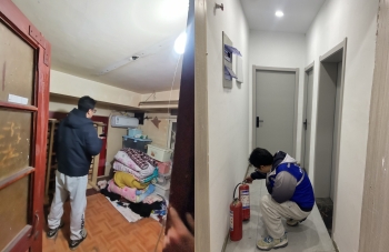 現場,工作人員、派出所民警及消防人員等,重點就“三合一”場所的安全出口數量、疏散門的開啟方向是否符合要求,疏散通道、安全出口是否被堵塞,滅火器的配置、電器線路鋪設是否符合要求、有無線路老化現象,場所內有無違規(guī)住人等情況進行檢查。
