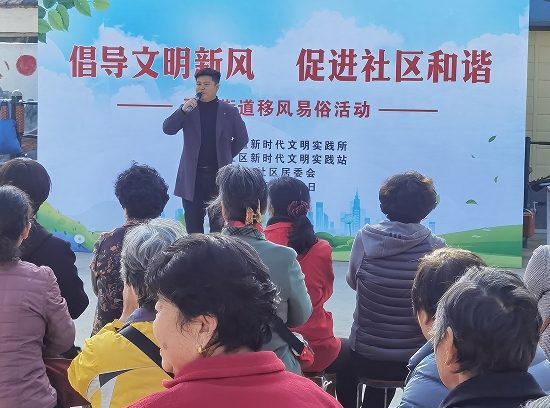 現(xiàn)場,社區(qū)退役軍人志愿者為大家?guī)砹艘粓鲋黝}為“倡導(dǎo)文明新風(fēng),促進(jìn)社區(qū)和諧”的移風(fēng)易俗宣講。宣講中提到,中國自古即為禮儀之邦,對風(fēng)俗的重視是每一個區(qū)域、地方中國人的傳統(tǒng)。在新時代下,我們需要秉持“取其精華、去其糟粕”的理念,適應(yīng)新時代的發(fā)展,不斷彰顯文化自信。同時,宣講還對鋪張浪費(fèi)、炫富攀比等不良心態(tài)進(jìn)行了深入剖析和批評,探討了文明祭掃等切實(shí)可行的實(shí)例,鼓勵大家樹立新型的婚喪嫁娶觀念。