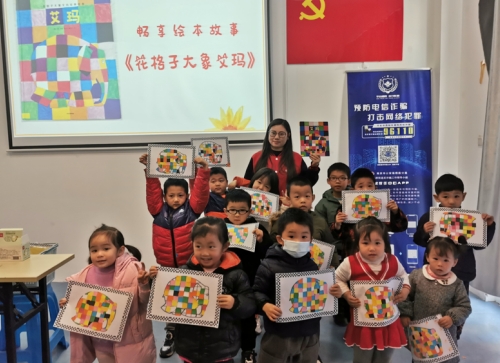 積分制志愿者以繪本故事《花格子大象艾瑪》展開了活動,像孩子們講述了一只叫艾瑪?shù)拇笙?,從設(shè)法接受自己的獨特,到善用自己的與眾不同,轉(zhuǎn)換為他獨特的幽默感,帶給大家歡樂的故事。