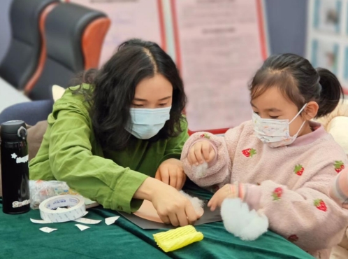 “哪位小朋友知道,大雪是二十四節(jié)氣中的第幾個節(jié)氣?”“雪花是怎么樣形成的呢?”……在互動環(huán)節(jié),商業(yè)幼兒園老師通過知識競賽的方式,帶大家深入了解大雪節(jié)氣知識。隨后,在老師的帶領(lǐng)下,開始進入手工制作環(huán)節(jié)。揉、捏、搓、貼......家長和孩子相互配合,制作著專屬親子間的大雪粘土畫,營造出了溫馨、歡樂的美好氛圍。