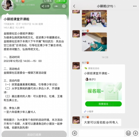 活動(dòng)前期,金陵驛社區(qū)通過掌云網(wǎng)格群發(fā)布活動(dòng)信息,組織居民群眾在掌上云平臺(tái)線上報(bào)名,明確活動(dòng)要求,簡(jiǎn)化報(bào)名流程,共招募了15組家庭參加。