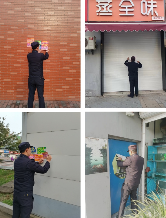 行動(dòng)中,隊(duì)員們變身“清潔工、粉刷匠”帶著鏟刀、刷子等工具,采取徒步巡查的方式重點(diǎn)對(duì)轄區(qū)內(nèi)道路兩側(cè)的卷簾門、門窗玻璃及其各類公共設(shè)施上的小廣告進(jìn)行全方位清理。對(duì)臨街視線可見范圍內(nèi)的亂張貼、亂刻畫、亂拖掛等進(jìn)行全方位清除,不留死角。對(duì)墻體上噴涂的違規(guī)小廣告需采用相近底色的涂料進(jìn)行覆蓋,謹(jǐn)防二次污染。同時(shí)加大對(duì)臨街商戶的宣傳、教育,要求商家嚴(yán)格落實(shí)“門前三包”責(zé)任制,主動(dòng)清理店鋪門前占道廣告牌、燈箱等設(shè)施,共同維護(hù)園區(qū)環(huán)境。對(duì)發(fā)現(xiàn)正在散發(fā)、張貼小廣告的不文明行為及時(shí)制止,并對(duì)其進(jìn)行勸誡和教育。