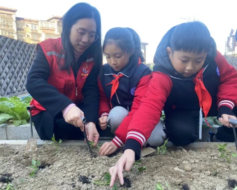 聚焦“一小”,編織“成長(zhǎng)搖籃”。在高店社區(qū)新時(shí)代文明實(shí)踐站,張謇小學(xué)的學(xué)生們跟著黨員志愿者參觀屋頂農(nóng)場(chǎng),學(xué)習(xí)農(nóng)作物的生長(zhǎng),除草、翻土、掘坑、澆水、放苗、施肥,感受著勞動(dòng)實(shí)踐帶來(lái)的快樂(lè)。