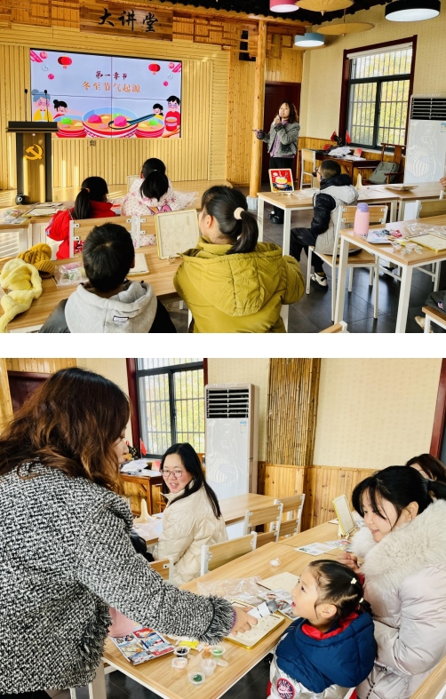 老師首先為社區(qū)的大小朋友們介紹了冬至節(jié)氣的起源、氣候特點、風俗習慣等知識。冬至,又稱日南至、冬節(jié)、亞歲等,兼具自然與人文兩大內(nèi)涵,既是二十四節(jié)氣中一個重要的節(jié)氣,也是中國民間的傳統(tǒng)祭祖節(jié)日。冬至是四時八節(jié)之一,被視為冬季的大節(jié)日,在古代民間有“冬至大如年”的講法。孩子們在聽講的過程中學到了很多之前不了解的知識,根據(jù)現(xiàn)在的氣候特點真切的感受到冬至節(jié)氣的氣候特點。