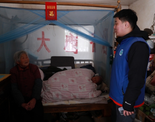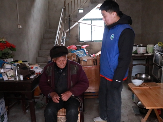 新農(nóng)社區(qū):網(wǎng)格走訪慰問困難老人 雪天