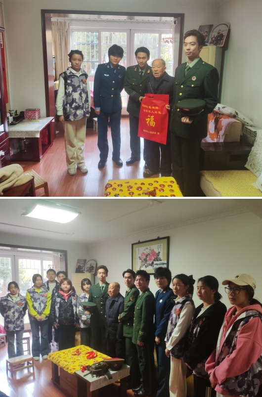 此次活動(dòng)是棲霞區(qū)退役軍人事務(wù)局、馬群街道退役軍人服務(wù)站、果場(chǎng)社區(qū)退役軍人服務(wù)站、南京財(cái)經(jīng)大學(xué)聯(lián)合開(kāi)展的尋訪抗美援朝老兵志愿服務(wù)活動(dòng)。在曾老的家中,大學(xué)生志愿者們與曾爺爺親切交談,認(rèn)真聆聽(tīng)記錄著九旬高齡曾老講述奔赴朝鮮為國(guó)而戰(zhàn)的故事。志愿者們問(wèn)增老:剛到戰(zhàn)場(chǎng)上,聽(tīng)到槍炮聲,您會(huì)怕嗎?曾老回答說(shuō):“那是自己年齡還小,還不太懂,一開(kāi)始也有些怕,但看到大家都往上沖,自己也就不怕了,現(xiàn)在身體里還留有兩枚彈片。”戰(zhàn)爭(zhēng)是異常殘酷的,在抗美援朝的戰(zhàn)場(chǎng)中,有多少志愿軍的指戰(zhàn)員赴湯蹈火,視死如歸,把生命都留在了朝鮮。4名退役復(fù)學(xué)的大學(xué)生志愿者對(duì)曾老浴血榮光的革命精神用軍禮表達(dá)了崇高的敬意,感謝他為祖國(guó)做出重大貢獻(xiàn),并表示一定會(huì)努力學(xué)習(xí)文化知識(shí),珍惜當(dāng)下的美好生活,要銘記抗美援朝戰(zhàn)爭(zhēng)的艱辛歷程和偉大勝利,弘揚(yáng)偉大的抗美援朝精神。