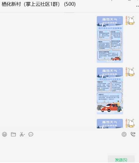 為了進(jìn)一步提醒居民注意雨雪天氣的安全問題,社區(qū)殘協(xié)工作人員及時(shí)發(fā)布了溫馨提示。通過社區(qū)群,他們提醒居民減少不必要的外出,注意防滑,合理調(diào)整出行計(jì)劃。同時(shí),他們還提醒居民要注意保暖,穿戴適合的衣物,避免感冒和其他寒冷天氣帶來的健康問題。