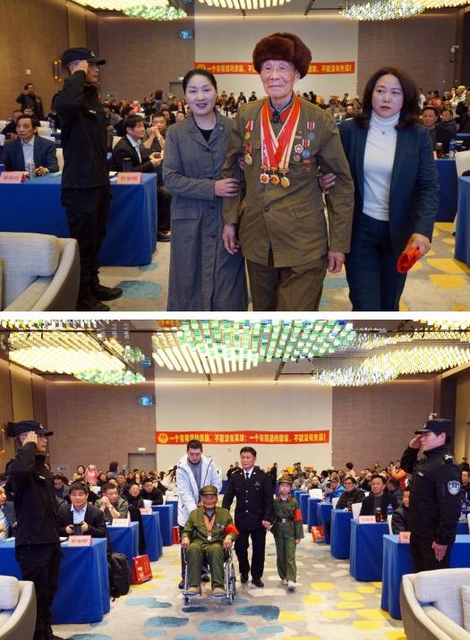 當(dāng)崔志揚(yáng)、芮學(xué)賢、袁友卿、朱萬(wàn)儲(chǔ)等6位老兵被簇?fù)碇呱现飨_(tái)時(shí),當(dāng)“老兵歸隊(duì)”“敬禮”等一個(gè)個(gè)震撼心靈的聲音響起時(shí),整個(gè)會(huì)議大廳掌聲雷動(dòng),200多名參會(huì)代表紛紛起立,向英雄的老兵行注目禮。12月23日下午,地處革命老區(qū)茅山的句容假日酒店里溫暖如春,句容市關(guān)愛退役軍人協(xié)會(huì)成立慶典現(xiàn)場(chǎng)高潮迭起、氣氛熱烈。