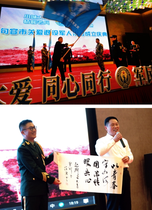 茅山,是一座英雄的山。7000多名革命先烈的鮮血灑在了蘇南這塊熱土上,灑在了茅山這片青山綠水間;茅山,是一座紅色的山。各地黨委、政府通過打造“鐵軍營(yíng)”“紅色記憶”“黨史學(xué)習(xí)教育館”,把紅色資源與景點(diǎn)景區(qū)、美麗鄉(xiāng)村結(jié)合起來(lái),展現(xiàn)紅色遺跡;茅山,更是一座不朽的山。新中國(guó)成立后,句容市優(yōu)秀兒女高擎紅色的旗幟,為立國(guó)威、壯軍威奉獻(xiàn)青春與熱血。為了將習(xí)近平總書記關(guān)于“讓軍人成為尊崇的職業(yè)”的要求落到實(shí)處,句容市120多位退役軍人企業(yè)家發(fā)起成立了句容市關(guān)愛退役軍人協(xié)會(huì)。為了向社會(huì)各界展示協(xié)會(huì)的創(chuàng)辦過程,協(xié)會(huì)舉行了簡(jiǎn)樸而熱烈的慶典。武警江蘇總隊(duì)原總隊(duì)長(zhǎng)顧惠琪將軍,武警湖北總隊(duì)原副政委陸令壽大校,原解放軍新疆某邊防團(tuán)團(tuán)長(zhǎng)、鎮(zhèn)江市公安局黨委委員陳憲根,參加過對(duì)越自我反擊戰(zhàn)的《解放軍報(bào)》戰(zhàn)地記者李青云大校,全國(guó)模范退役軍人、第八屆江蘇省道德模范於如桂,全國(guó)模范退役軍人、江蘇華騰軍創(chuàng)科技園有限公司董事長(zhǎng)潘維伍,句容市退役軍人事務(wù)局局長(zhǎng)段續(xù)文,6名參加過解放戰(zhàn)爭(zhēng)、抗美援朝、“兩山”輪戰(zhàn)的老兵,句容市各鄉(xiāng)鎮(zhèn)、街道退役軍人服務(wù)站站長(zhǎng),來(lái)自南京、江陰的公益慈善組織和協(xié)會(huì)會(huì)員企業(yè)負(fù)責(zé)人共計(jì)200多人見證了這一盛會(huì)。
