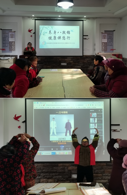 為進(jìn)一步倡導(dǎo)樹(shù)立新時(shí)代文明健康生活方式,引導(dǎo)村民科學(xué)健身,12月26日,南京市江寧區(qū)淳化街道茶崗村新時(shí)代文明實(shí)踐站聯(lián)合紅葉社工,在大花區(qū)議事園開(kāi)展“養(yǎng)身八段錦 健康伴您行”健身普及教學(xué)活動(dòng)。活動(dòng)旨在弘揚(yáng)中華傳統(tǒng)養(yǎng)生文化,倡導(dǎo)文明健康的生活方式,得到了村民的積極響應(yīng)和參與。