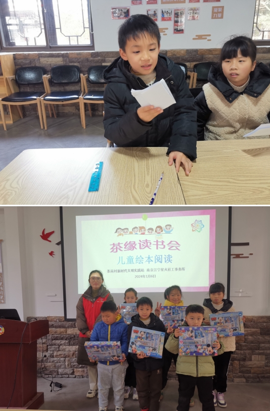 書籍,是人類寶貴的精神財富。為進(jìn)一步激發(fā)社區(qū)兒童的閱讀興趣,借助繪本閱讀為兒童形成良好的閱讀習(xí)慣,提高他們的閱讀能力和表達(dá)能力,2024年1月6日,南京市江寧區(qū)淳化街道茶崗村新時代文明實踐站聯(lián)合星火社工,在大花區(qū)議事園開展“茶緣讀書會-兒童繪本閱讀”主題活動。