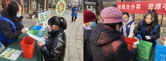 活動(dòng)中,志愿者通過(guò)知識(shí)問答、分類轉(zhuǎn)盤、分類投放的形式,隨機(jī)提問垃圾分類小常識(shí),使居民群眾加深生活垃圾分類印象,做到準(zhǔn)確辨別廚余垃圾、有害垃圾、其他垃圾、可回收物等四類生活垃圾類別。