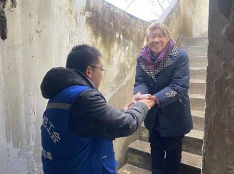 “我家是來自河南的,有的家庭來自安徽,都是附近省份,來這里基本都是在附近的蘇果倉儲務(wù)工。”來到職工家里,工會會員們與家中老人攀談了起來,“孩子擔(dān)心我的身體,就把我接到南京來居住照顧。再過些天,就一起回老家。”工會會員們一邊了解職工家庭情況,一邊講述今日上門的緣由,對外來務(wù)工的職工家庭表達了節(jié)日的祝福。