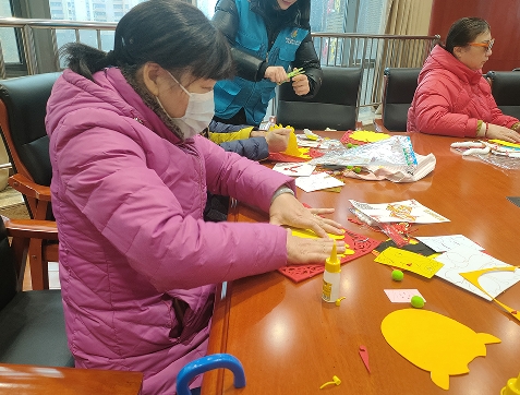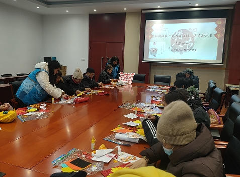 除了“送粥”活動(dòng)以外,社區(qū)還開展了手工制作的活動(dòng),邀請轄區(qū)內(nèi)殘疾人和孤寡老人前來參加,活動(dòng)通過宣講臘八來歷、“手把手”教學(xué)制作“臘八粥”、手工藝品和共品臘八粥等形式,豐富人們的精神文化生活,形成鄰里守望相助,共建美好社區(qū)的濃厚氛圍。