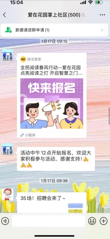 為深化全民閱讀活動(dòng),豐富青少年的課余生活,弘揚(yáng)中華優(yōu)秀傳統(tǒng)文化。南京市棲霞區(qū)龍?zhí)督值阑▓@村委會(huì)利用“掌上云社區(qū)”小程序發(fā)布全民閱讀活動(dòng)招募,線下社區(qū)“掌上云社區(qū)”志愿者開(kāi)展“點(diǎn)亮閱讀之燈 開(kāi)啟智慧之門(mén)”主題活動(dòng)。