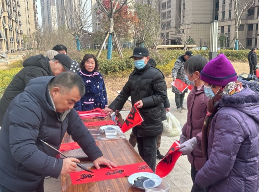 活動(dòng)現(xiàn)場(chǎng)熱鬧非凡,書(shū)法家們揮毫潑墨,一幅幅精美的春聯(lián)和福字躍然紙上。居民們紛紛圍在桌前,欣賞著書(shū)法家的作品,小區(qū)的小朋友們還主動(dòng)請(qǐng)求為自己寫(xiě)上一幅心儀的春聯(lián)。社區(qū)工作人員也忙著將寫(xiě)好的福字送到居民家中,同時(shí)也給社區(qū)的殘疾人等特殊群體送上春聯(lián),讓他們?cè)谛麓杭压?jié)感受到社區(qū)的溫暖和關(guān)懷。