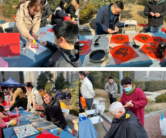 此外,為了讓大家感受到濃厚的節(jié)日氛圍和家的溫暖,在這里可以嘗試寫春聯(lián)送福字、體驗(yàn)新年窗花剪紙、手工燈籠制作等活動(dòng),還可以在網(wǎng)紅小龍人打卡點(diǎn)留下你的美好瞬間。同時(shí),為了滿足大家的口腹之欲,上坊社區(qū)還提供了龍年手工包、3D立體拼圖、甜品爆米花、非遺糖畫、套圈等美食。還有暖心理發(fā)服務(wù),讓你在新的一年從頭開(kāi)始,煥發(fā)新的活力。在這里,每個(gè)人都能找到自己喜歡的活動(dòng),盡情享受這場(chǎng)“家門口”的文化盛宴,讓大家感受到社區(qū)的溫暖和文化的魅力,共同迎接一個(gè)美好的新年。