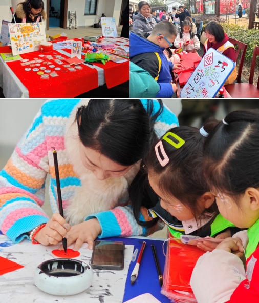 舞臺(tái)表演現(xiàn)場(chǎng)還設(shè)置了傳統(tǒng)文化習(xí)俗展示區(qū)。社區(qū)居民可以在這里親身體驗(yàn)傳統(tǒng)文化的獨(dú)特魅力。新春全家福拍攝活動(dòng)讓居民們記錄下團(tuán)圓時(shí)刻,感受家的溫暖;巧手窗花迎新春活動(dòng)則讓居民們親手剪紙,寄寓著對(duì)美好生活的向往;萬(wàn)幅春聯(lián)進(jìn)萬(wàn)家活動(dòng)邀請(qǐng)書法家現(xiàn)場(chǎng)書寫春聯(lián)和福字,為居民們送上新春的祝福;粉妝玉琢,妙筆生花活動(dòng)讓孩子們?cè)谀樕袭嫵雒利惖膱D案,寓意著迎接新一年的美好與希望。此外,“京”彩紛呈畫臉譜、“龍年手作”小神龍燈籠DIY、“玉”見美好,愛的“爆爆”、幸福棉花糖,甜蜜迎新年等環(huán)節(jié)也為居民們帶來(lái)了別樣的文化體驗(yàn)。