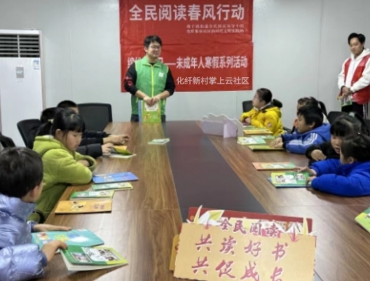 春節(jié)臨近,南京市棲霞區(qū)燕子磯街道化纖新村掌上云社區(qū)聯(lián)合新時(shí)代文明實(shí)踐站在寒假來臨之際,為轄區(qū)未成年人開展“全民閱讀春風(fēng)行動(dòng)”親子家庭共讀活動(dòng)。