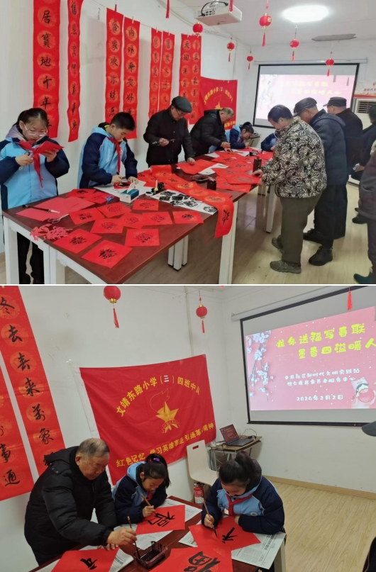 隨著春節(jié)的臨近,家家戶戶都沉浸在新春的喜慶氛圍中。在這喜慶的時刻。2月2日,南京市江寧區(qū)東山街道中前社區(qū)新時代文明實(shí)踐站聯(lián)合德爾康居家養(yǎng)老服務(wù)中心聯(lián)合南京市文靖東路小學(xué)三年級四班共同開展了“龍年送福寫春聯(lián),墨香四溢暖人心”活動。