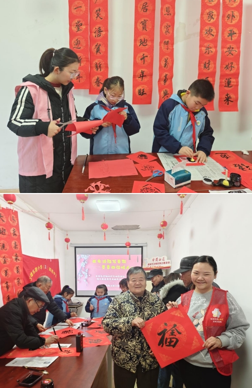 現(xiàn)場還有拓印福、剪窗花等傳統(tǒng)民俗活動。居民們紛紛圍在桌前,欣賞著書法愛好者和小學(xué)生們的精彩表演,感受著濃濃的年味和溫馨的社區(qū)氛圍?;顒咏Y(jié)束后,書法愛好者和小學(xué)生們來到老人們的家中,親手將“福”字和對聯(lián)送到他們手中,祝愿老人們新春快樂、身體健康。老人們接過“福”字和對聯(lián),臉上洋溢著幸福的笑容,他們激動地表示,這不僅是他們收到的最好的禮物,更是他們感受到的最溫馨的關(guān)愛。